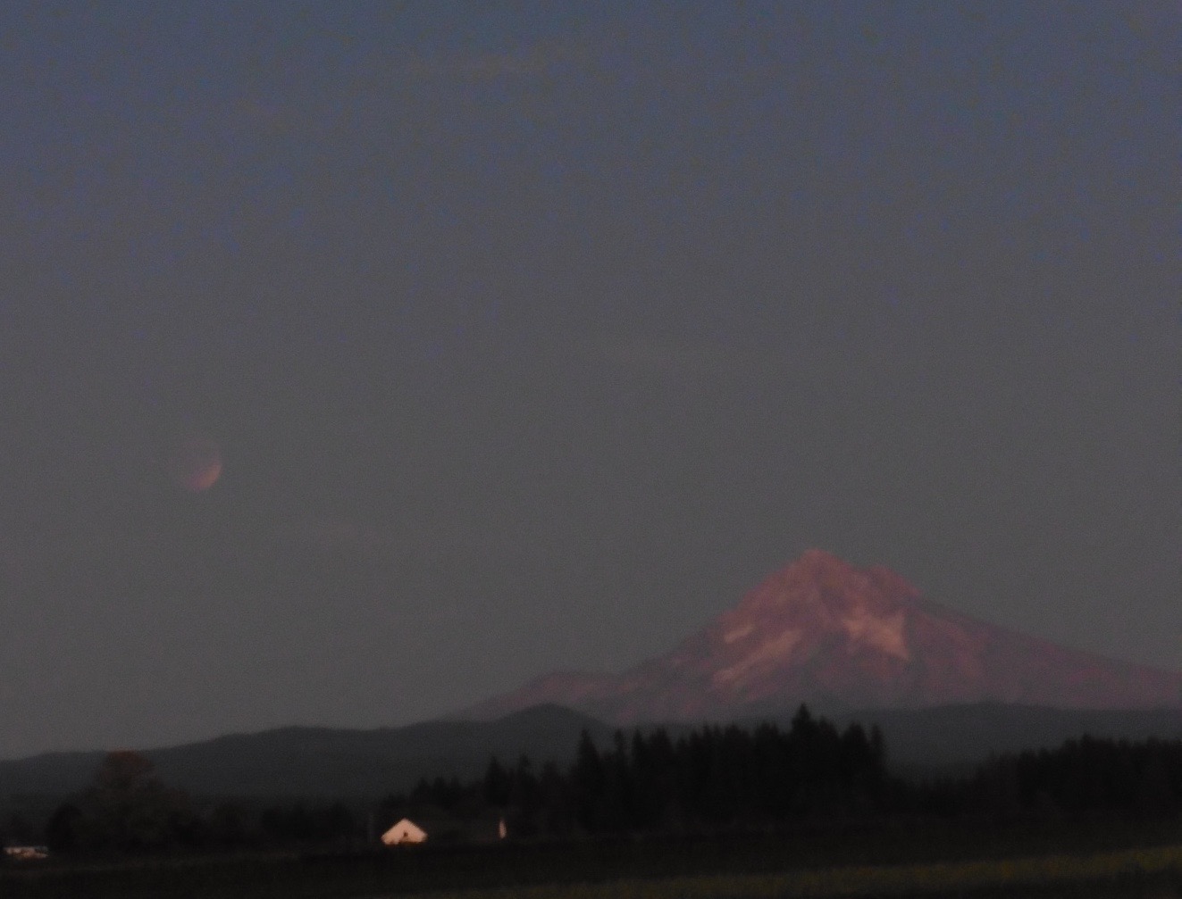 Although I had come down with a cold by the time the eclipse was to take place, I hopped in my car with a box of tissues at my side and drove [along with at least 30 other cars] to Revenue road to try to get some photos of the eclipse with Mt. Hood in view as well.